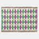 Bright purple and green diamonds overlaid with gold-toned diamond outlines and fleur de lis bring to mind the revelry and celebrations associated with a New Orleans Mardi Gras, while a cream base adds a touch of refinement to this argyle pattern.