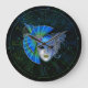 Mardi Gras Clock, Blue Green Mardi Gras Mask Large Clock