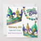 Cute and whimsical Mardi Gras crowns and beads adorn the front of this customizable Mardi Gras party invitation. The reverse of this invitation has room to customize your party information. The reverse features a background of Mardi Gras beads in purple gold and green.