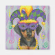Cute Doberman Pinscher Puppy, dressed in festive mask, jester hat and beads, ready for fun on Mardi Gras or at any other time. Great gift for yourself and your Dobe-loving family and friends.
