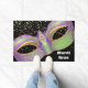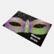 This doormat is shown in black with a gold stars print with a festive Mardi Gras Carnival Mask print.
