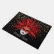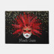 This doormat is shown with a Black coloured background with gold stars with a festive carnival Mardi Gras Mask print.