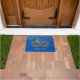 This doormat is shown with a Blue coloured background with gold stars with a festive carnival Mardi Gras Mask print.