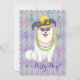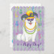 Invite your friends to be Party Dogs and celebrate Mardi Gras with this cute little American Eskimo Dog, dressed in festive mask and beads. Get ready for fun at a doggone good party. Laissez les bon temps rouler!
