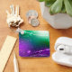Bright purple and green background with shiny confetti. Festival Mardi Gras.