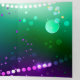 Bright purple and green background with shiny confetti. Festival Mardi Gras.