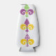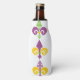 This bottle cooler has a Mardi Gras design of fleur de lis lined across the design with different design in them.