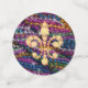 Confetti. Gold, green and purple fleur de lis on pearls background for a themed party!