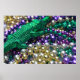 Purple, gold, and green Mardi Gras beads are accented by a large green alligator bead. Customise and add your own text to the print!