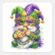 Mardi Gras Gnome Eating King Cake Square Sticker