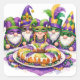 Mardi Gras Gnome Party With King Cake Square Sticker