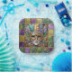 Mardi Gras Gold & Ceramic Colourful Feather Mask Paper Plate