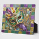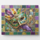 Mardi Gras Green and Gold Colourful Feathers Mask Plaque