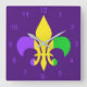 Mardi Gras Green Yellow Purple Fleur-de-Lis Square Wall Clock
