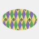 Mardi Gras Harlequin Fleur De Lis Oval Sticker