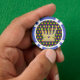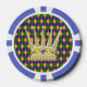 Poker Chips with a Mardi Gras Harlequin Pattern in purple, green and gold diamond shapes With Crown