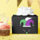 Wrap your Mardi Gras gifts in style with this festive wrapping paper! Featuring a lively pattern of colourful jester hats in classic Mardi Gras purple, green, and yellow on a striking black background, this wrapping paper adds the perfect touch of carnival flair to any celebration. It's sure to make your gifts the life of the party!