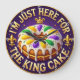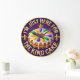 Bring the delicious and high-energy spirit of the Carnival season into your home with this festive King Cake wall clock. The central face features a high-definition graphic of a traditional King Cake, complete with thick white icing and vibrant purple, green, and gold sugar sprinkles. The design is framed by the humorous and bold gold-style proclamation, "I'm Just Here For The King Cake," set against a rich royal purple background. While the artwork masterfully mimics the textured appearance of a freshly baked pastry and the metallic sheen of polished gold lettering, this is a lightweight and durable graphic timepiece rather than actual food or cast metal. The thin, gold-style numeric markers provide professional contrast, ensuring the time is easy to read. This timepiece serves as a fun and polished focal point for any kitchen or dining area, making it an excellent self-gift for Mardi Gras fans.