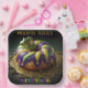 Present your delicious Mardi Gras King Cake with purple, yellow and green frosting and a little crown.