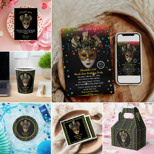 Mardi Gras Mask 21st Birthday Party Thank You Card