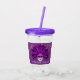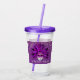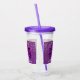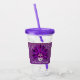 This acrylic tumbler comes with a lid and straw that you can choose the colour of. Front and back images are a carnival Mardi Gras festive mask in the colours of purple with petite golden-like stars. Background is purple. Text of "let the good times roll" beneath the mask. This tumblers shown with the purple coloured lid and straw.