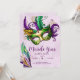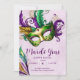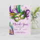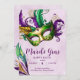 Festive New Orleans Mardi Gras themed party favour in green gold and purple, the traditional colours of Fat Tuesday carnival. Perfect invite for NOLA themed parties. Wavy faux glitter design.