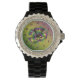 Get ready for Fat Tuesday this year with a feather topped Mardi Gras mask overlaying an optical illusion in the classic colours of green, gold, and purple. Share in some New Orleans inspired fun whether you plan on partying in the Big Easy itself or celebrating somewhere closer to home. This watch is available in a variety of colours, styles, and sizes, including sizes for both kids and adults.