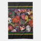 16” x 24” black kitchen towel with an image of colourful Mardi Gras masks adorned with bright feathers and glitter on black. Purple, green and gold stripe borders. See matching cloth napkin, paper cocktail napkin, cloth placemat, paper placemat and coasters. See the entire Mardi Gras Kitchen Towel collection in the FOOD/BEV | Linens section.