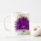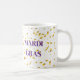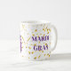 This coffee mug is shown with an image of a festive Mardi Gras mask over golden confetti with Text of "MARDI GRAS'.