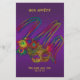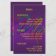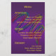Mardi Gras Party Menu Stationery. | We created a lavish golden Mardi Gras mask decorated with multi-coloured peacock feathers and beads on a gorgeous deep purple background and the text is in a lovely complimentary golden colour. Coordinating Mardi Gras Wedding invitations, accessory cards and other wedding and event products are available.