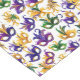 This table runner is shown with a festive Mardi Gras colors mask pattern print.