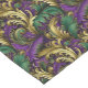 This table runner is shown with a luxury look Mardi Gras pattern print.