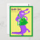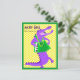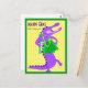 This colourful Mardi Gras postcard has the traditional colours - a purple alligator is playing a green accordion and wearing gold beads. The background is yellow polka dots. Text says Mardi Gras, New Orleans, LA, but you can customise it.