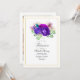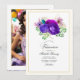 Celebrate your quinceañera in true Mardi Gras style with this elegant invitation featuring vibrant purple, hot-pink, gold, and green florals, complemented by a luxurious gold border. This festive design includes a placeholder on the reverse for the quinceañera's photo, making it a perfect way to announce this special milestone with flair.