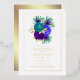 Mardi gras-themed quinceanera invite designed to be quickly and easily customised to your event specifics. Please note that the leaves on the front and the graphic on the reverse are simulated foil.