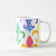 This Mardi Gras coffee mug features a pattern of watercolor rainbow fleur de lis pattern on a white background. Personalise with a monogram initial. Designed by world renowned artist ©Tim Coffey.