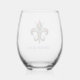 This wine glass is shown in a festive Mardi Gras Fleur de Lis print.