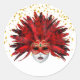 This large size round sticker is shown in a festive Mardi Gras celebration mask print design.