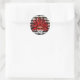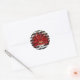 This small size round sticker is shown in a festive Mardi Gras celebration mask print design.