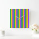 Mardi Gras Stripes Pattern Green Yellow Purple Fat Tuesday Carnival Party Colourful Decor Square Wall Clock
