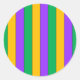 Mardi Gras Stripes Pattern Purple Green Yellow Classic Round Sticker