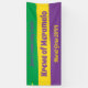 Mardi Gras parade or event banner with green, yellow, and purple stripes and your custom text on each line.