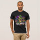 Perfect to wear to your Mardi gras parties, this men's t-shirt is shown with a let the good times roll gator jester celebration print.