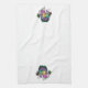 16” x 24” white kitchen towel with a festive Mardi Gras image, on both ends, of a feathered headdress, a feathered mask, a fuchsia sequined hat, green and purple beads, purple, green, and gold balloons, and two purple amethyst hearts. See matching cloth napkin, paper cocktail napkin, cloth placemat, paper placemat and coasters. See the entire Mardi Gras Kitchen Towel collection in the FOOD/BEV | Linens section.