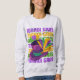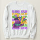 Stylish MARDI GRAS Top Hat Feathers sweatshirt in the popular colours of purple, gold and green. The design shows a large Mardi Gras top hat with feathers and theatre masks. The phrase MARDI GRAS is repeated in the same colours in the background in bold typography. Ideal Mardi Gras sweatshirt to wear in the streets of Louisiana, New Orleans, Brazil, and anywhere Mardi Gras is celebrated. Also in black.