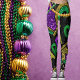 Show your festive spirit in these purple, gold, and green Mardi Gras leggings! The glittering allover print with flashy beads captures the excitement of carnival.