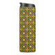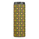 A thermal tumbler with a seamless pattern with fleur-de-lis (lily flowers) in the colours of New Orleans Mardi Gras; purple, golden, and green design