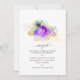 Watercolor mardi gras peacock birthday invitation card with accents of purple and gold.