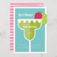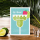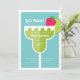 Fiesta! Cute birthday party invitations feature a frosty lime green margarita cocktail bearing your party details in white lettering, on a vibrant turquoise background. "Let's Fiesta!" appears at the top; or change to your custom headline.