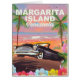 Venezuela, Margarita Island vintage style travel poster of beautiful old classic auto on the beach.